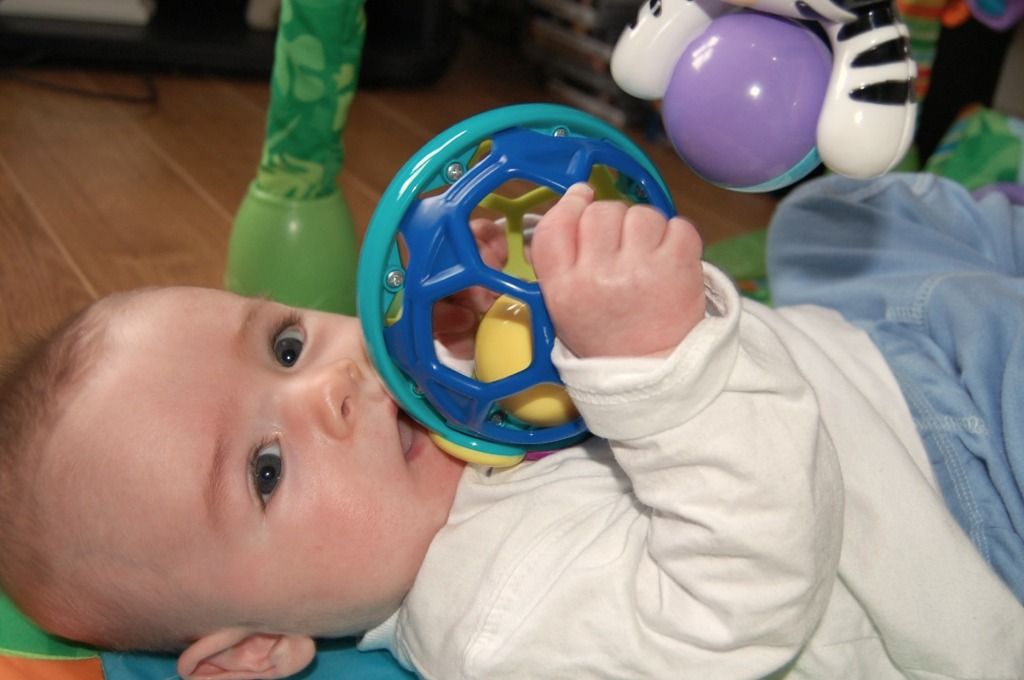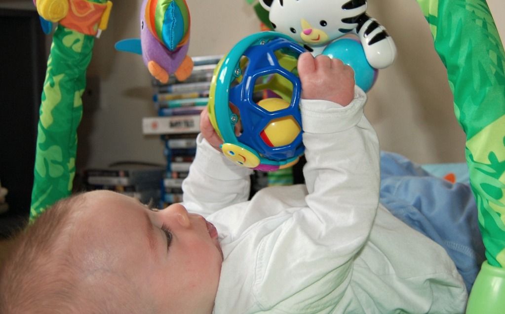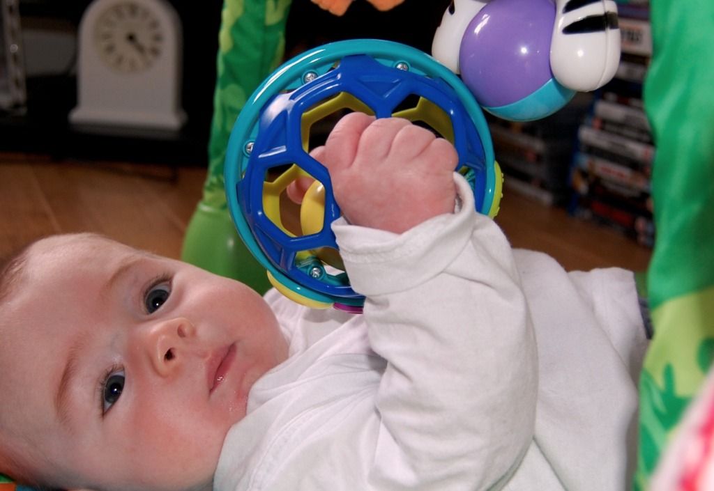 John has definitely got the hang of grabbing onto things. He especially likes this toy as it’s perfect for his wee fingers and it’s pretty tasty, apparently.