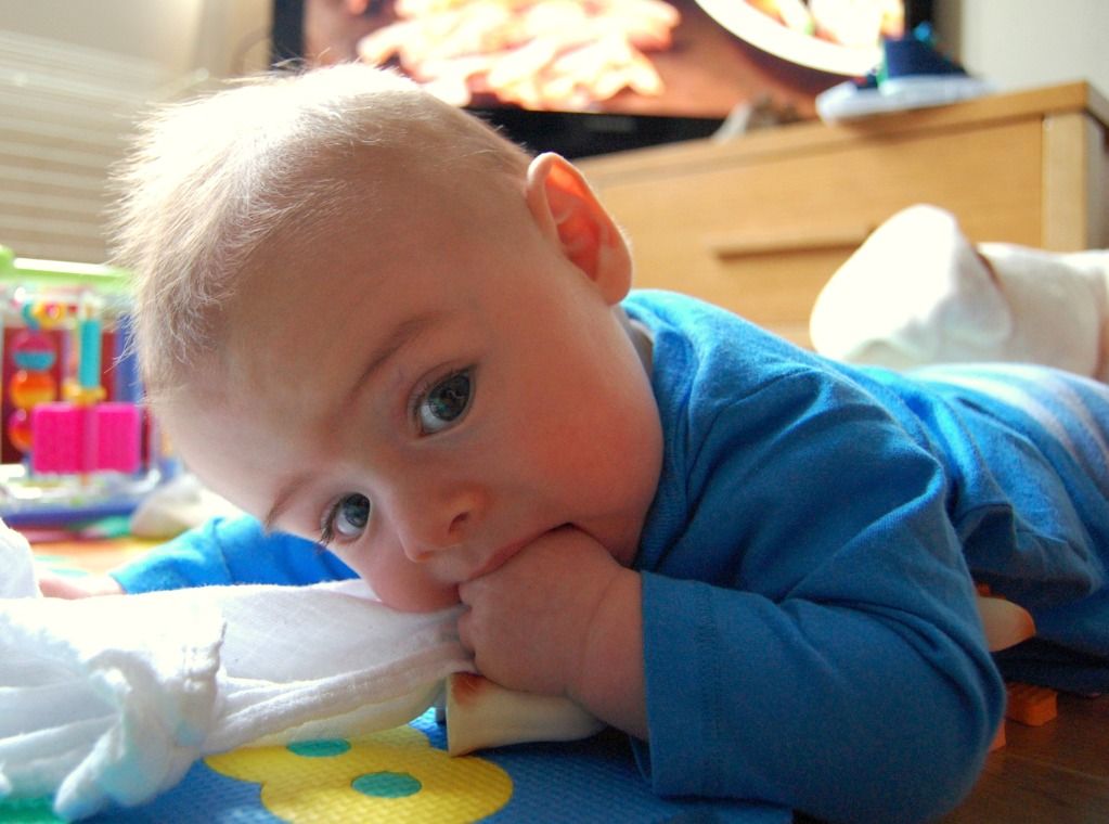 You’re a master of rolling now and within seconds of being put on your back you’ll have flipped to your tummy. Not only that, you’ve started pushing your bum up and getting on your knees! The arms are still firmly on the ground but I’ve no doubt they’ll soon follow.