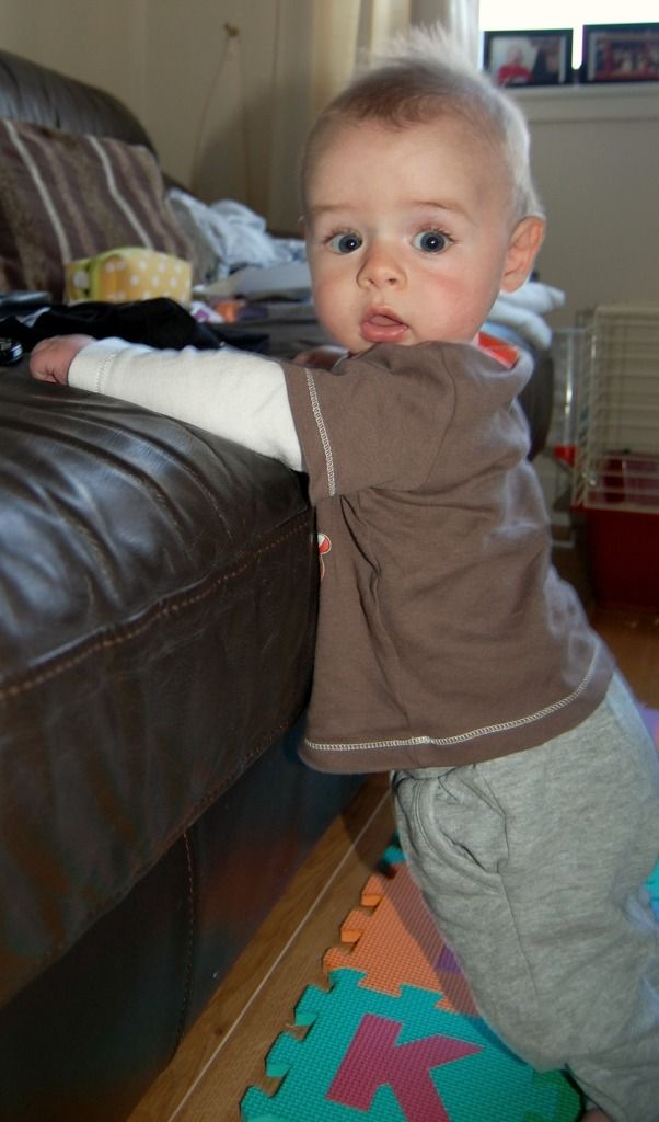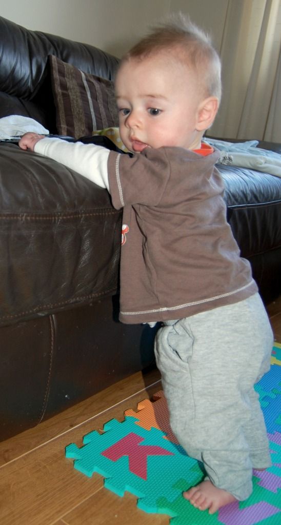 Oh, and those pictures of him standing? He might of had a little help from Mummy in getting up on the couch but he loves acting like a big boy!