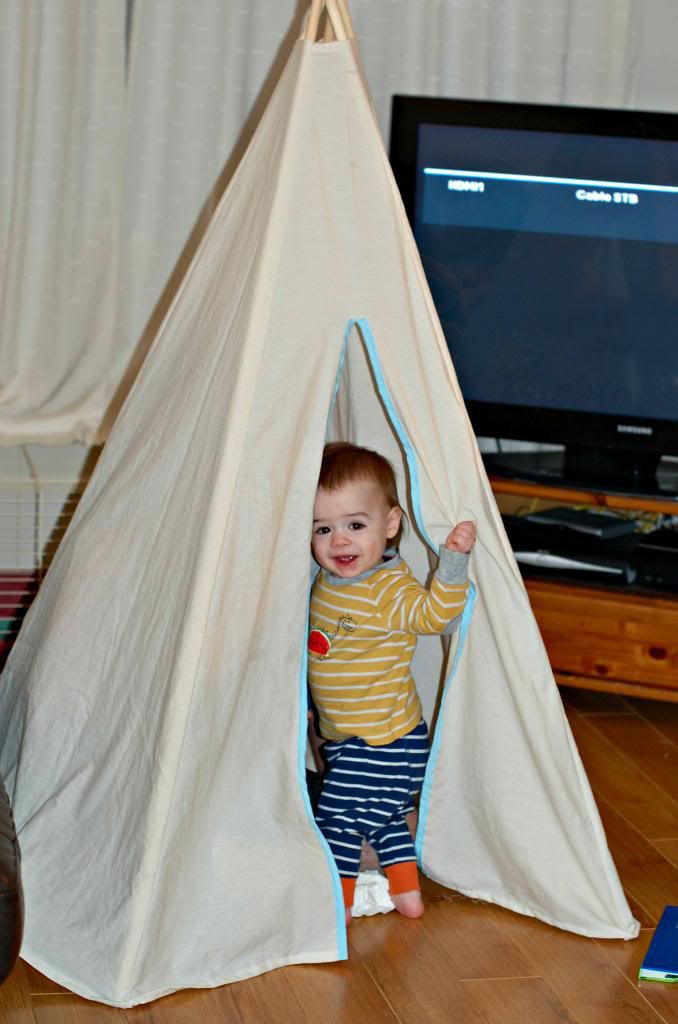 After cuddles and a play in our bed, you toddled on through to the living room whilst holding Mummy’s hands. Of course, you were more interested in the bottle of anti-bacterial spray that had fallen from the table than you were the teepee full of present & cards for you.