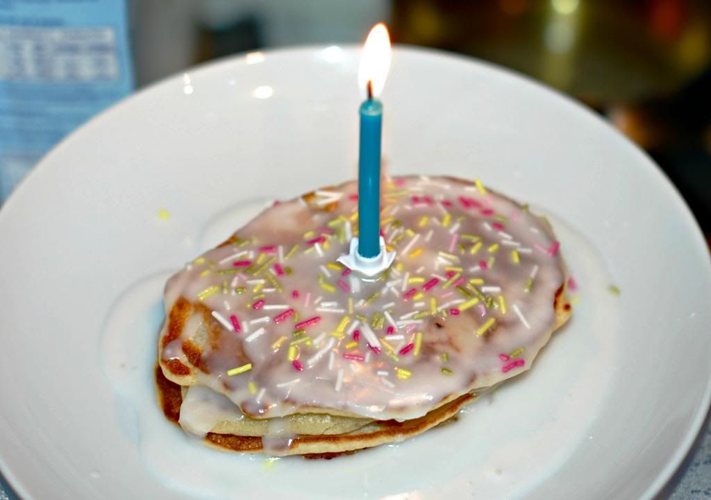 Mummy made you some special birthday cake pancakes, complete with one little candle for you to blow out, however you thought it made more sense to put the candle out with your hand; there was a lesson in that (& some tears too!).