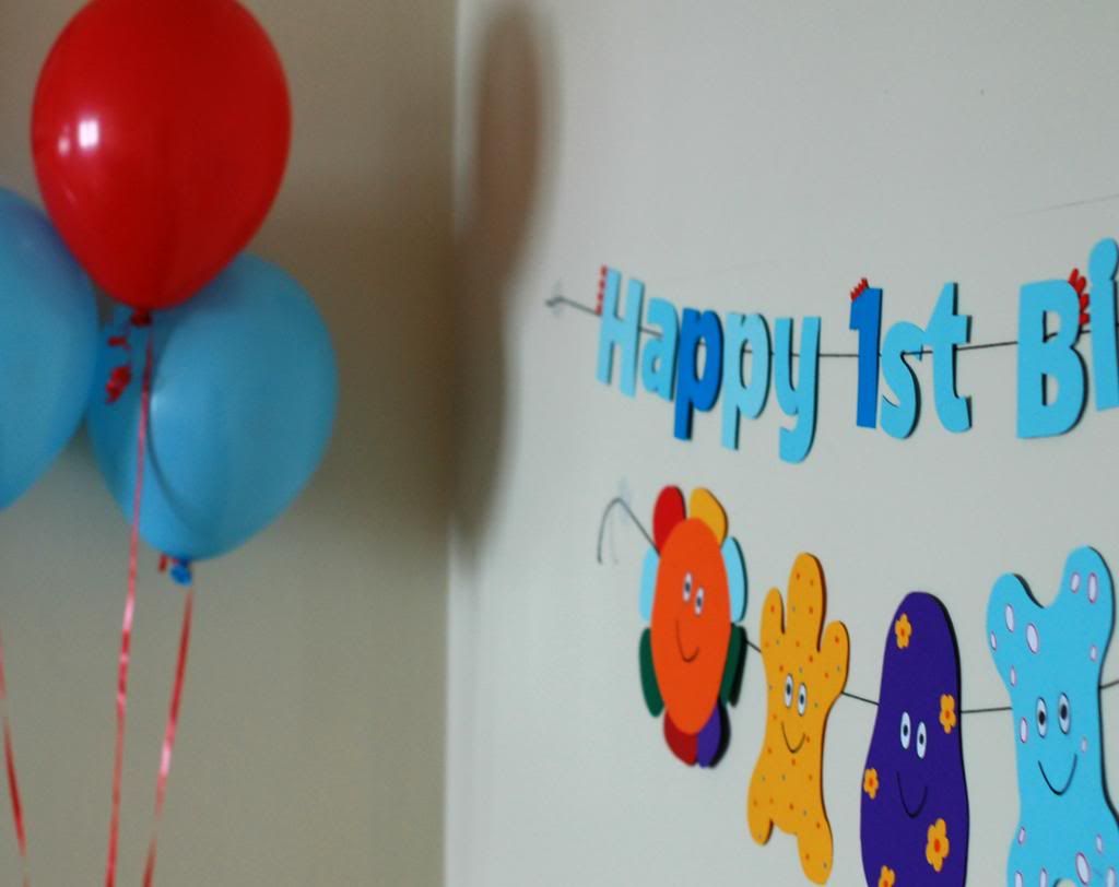 I spent numerous hours putting together invites to print, banners to hang and filling lots of balloons with helium stolen from my work. I was determined to do things well but we were working on an extremely tight budget. Thankfully it all came together at the last minute.