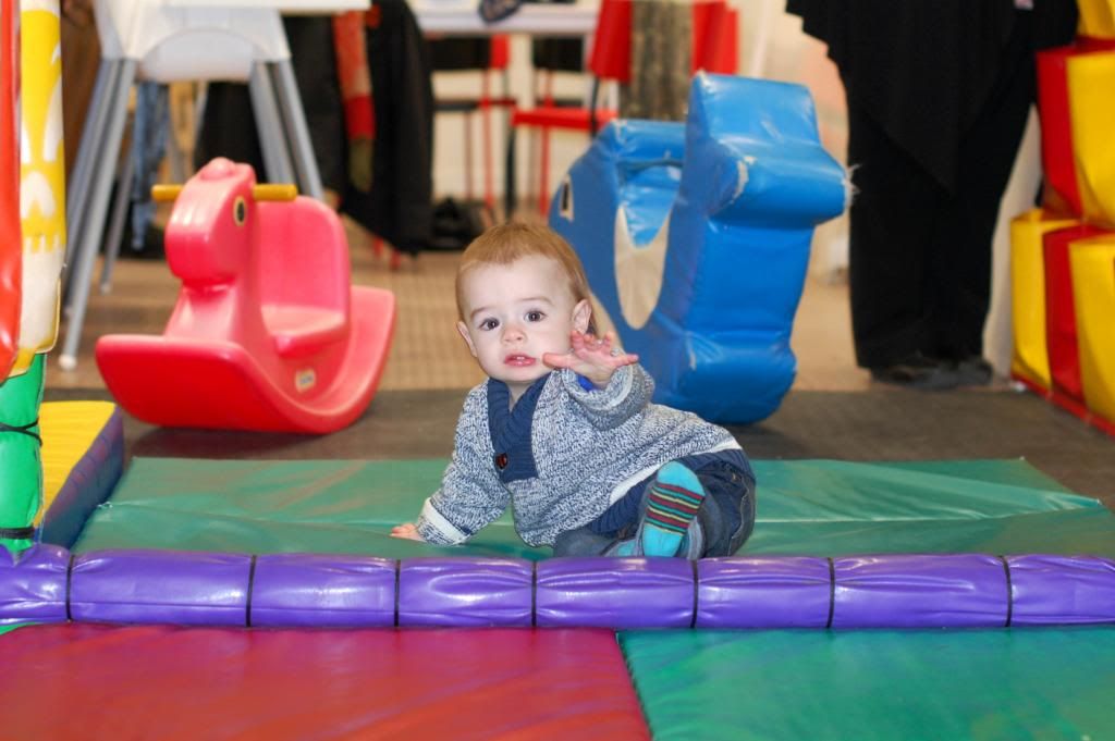 We're now at an age where the next lot of Mums have started attending the local baby group; I watch them with their only-months-old babies, listening to them discussing when their little ones will sleep through (oh, if only they knew!) and think it's maybe time to move on. But we're at the awkward age between Baby Groups and Toddler Groups; for now though it seems the stepping stone between is meeting at the local soft play areas.