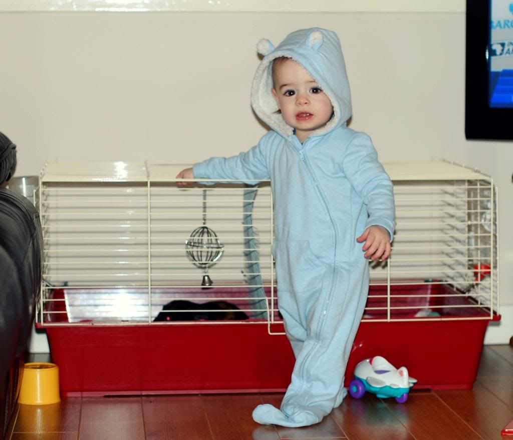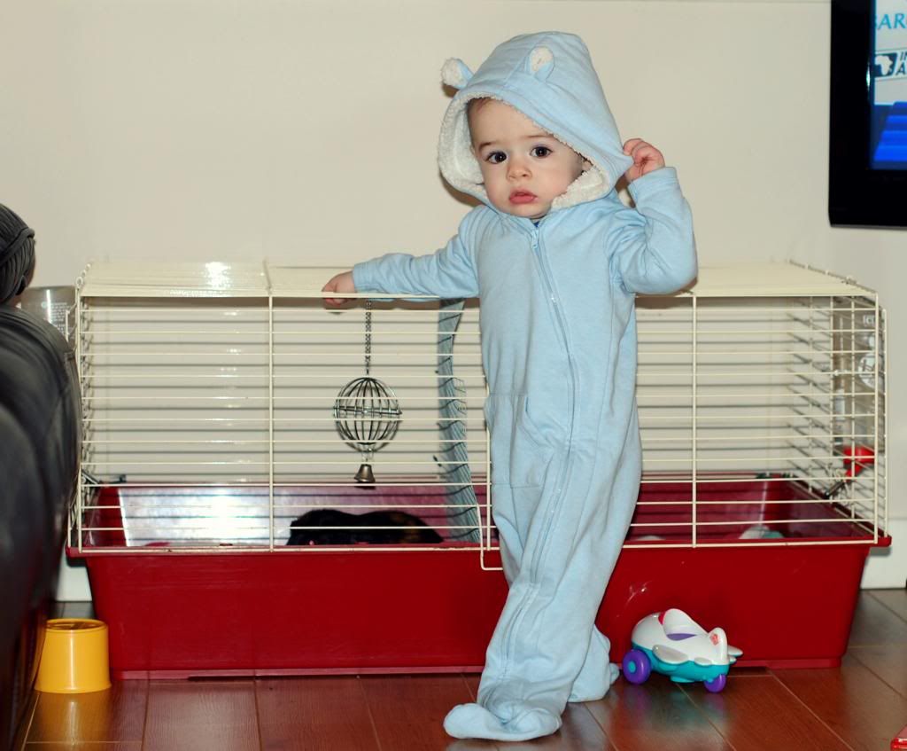 He cruises around the house like he owns the place, causing destruction as he goes. On occasion he'll stop for a cuddle and kiss before going from room to room, checking things are still in order.