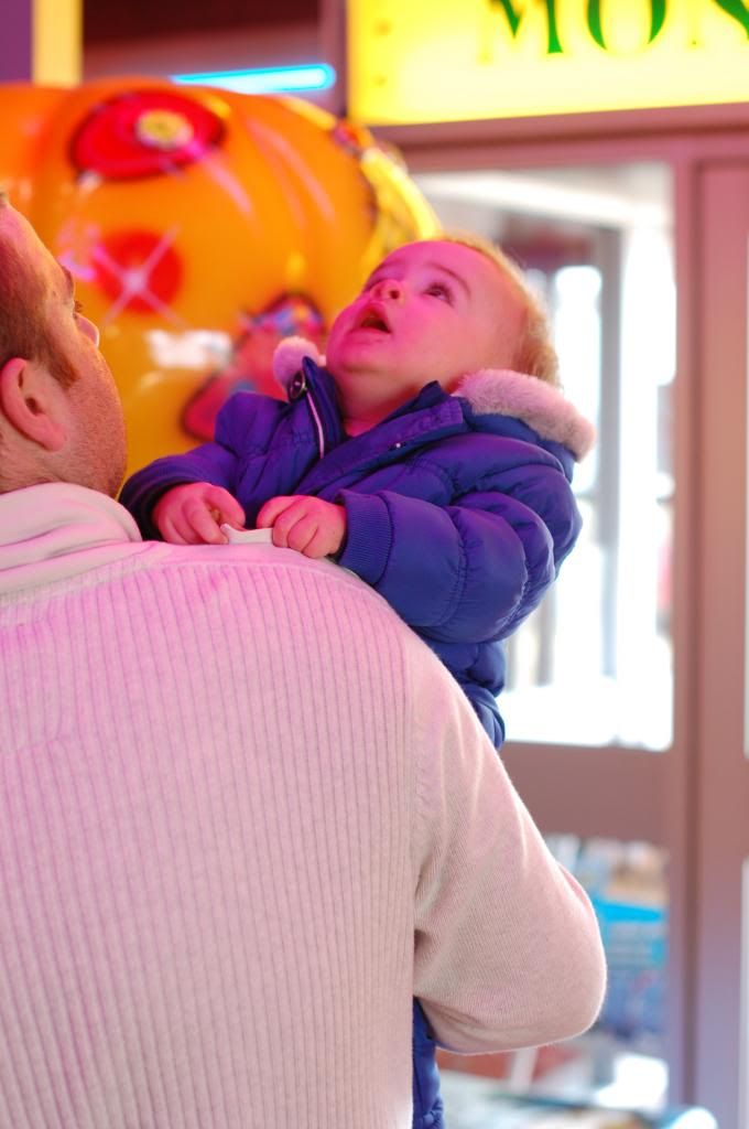 And of course, it goes without saying, John loved being out with both Mummy & Daddy, as more often than not these walks are subject to just one parent due to the restraints of being a working-family. Daddy also had a great time pushing John along in his new bike, going faster than Mummy would have gone, doing 'wheelies' around the corner, and even deciding to take a pit-stop in the Amusements to play the two pence slots and so John could watch the ceiling fan.